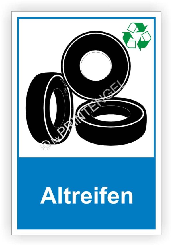 Altreifen Hinweisschild Recycling als Aufkleber oder Aluverbund Schild