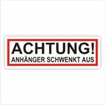 Hinweisschild – Achtung! Anhänger schwenkt aus – als Aufkleber, Magnet Schild oder Alu-Vebund 3mm