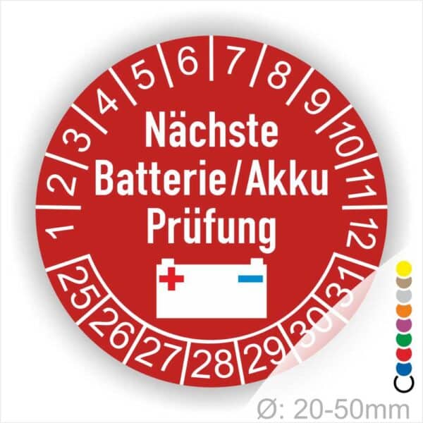 Wir bieten ihnen hochqualitative Batterie Akku Prüfung Prüfplaketten, in vielen verschiedenen Varianten. Wählen sie ihre Wunschgröße als auch ihre Wunschfarbe und bei individuellen Wünschen können sie auch ihre individuellen Prüfplaketten bei uns Bestellen.