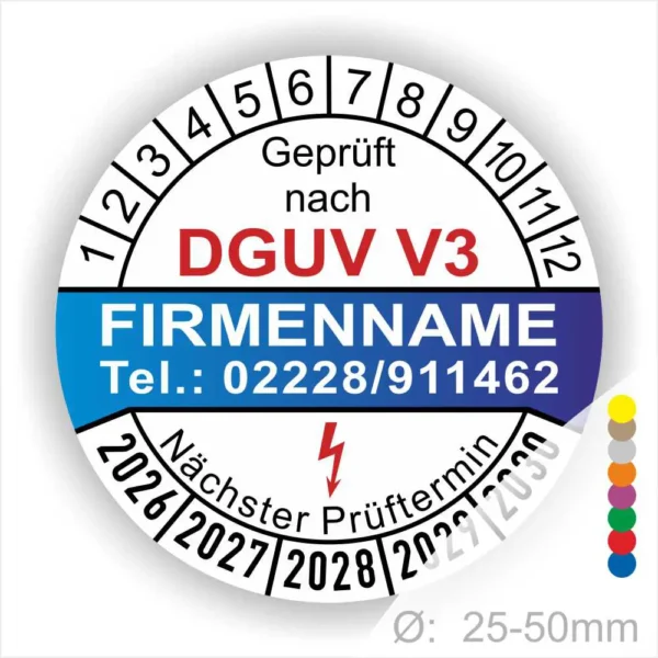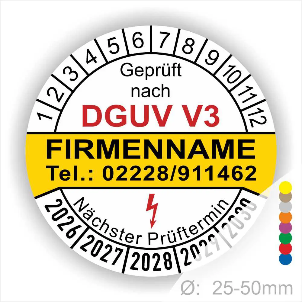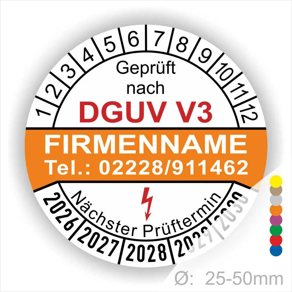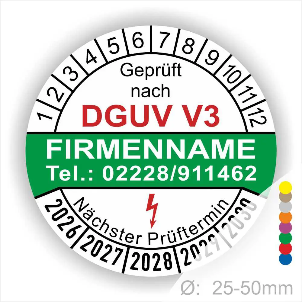 DGUV Prüfplaketten mit Firmenaufdruck Werbeaufdruck , in vielen verschiedenen Varianten.