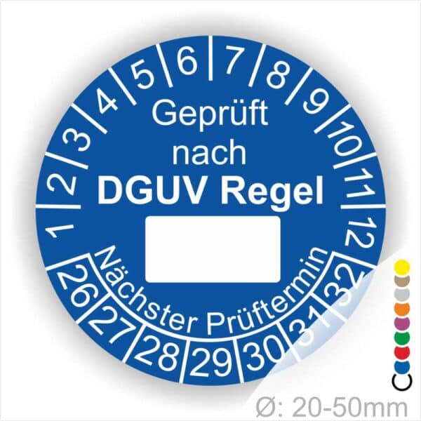 Wir bieten ihnen hochqualitative DGUV-REGEL Prüfplaketten mit Leerfeld zum beschriften, in vielen verschiedenen Varianten. Wählen sie ihre Wunschgröße als auch ihre Wunschfarbe und bei individuellen Wünschen können sie auch ihre individuellen Prüfplaketten bei uns Bestellen.