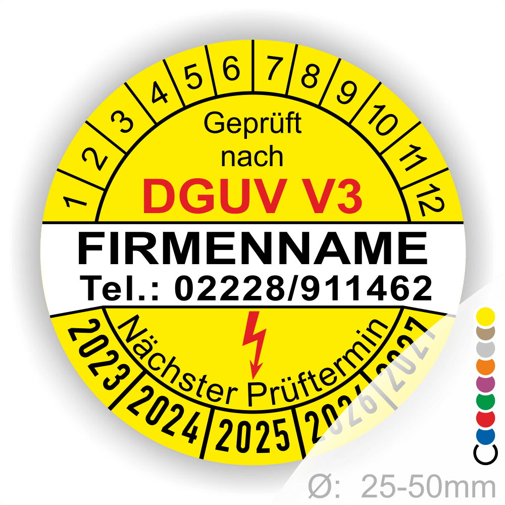 DGUV V3 Prüfplaketten Wunschtext personalisiert