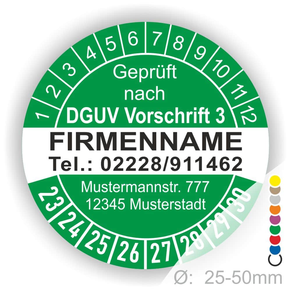 Wir bieten ihnen hochqualitative Prüfplaketten nach Dguv Prüfplaketten Prüfung nach DGUV Vorschrift 3, in vielen verschiedenen Varianten.