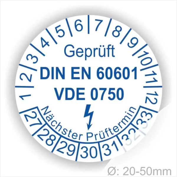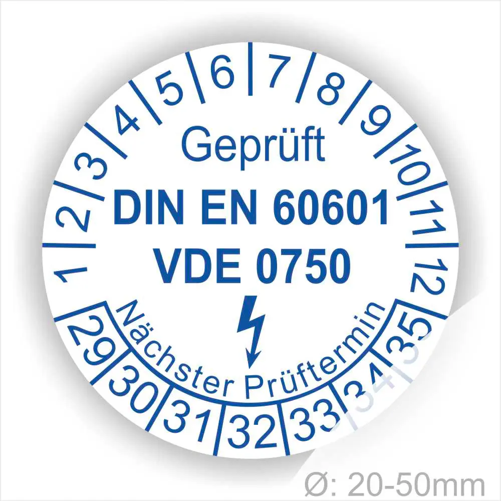 Selbstklebende Prüfplaketten „DIN EN 60601 VDE 0750 Prüfplakette“