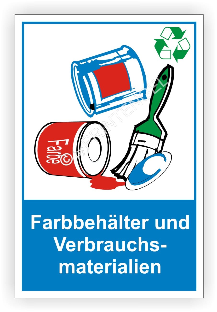 Farbbehälter und Verbrauchsmaterialien Hinweisschild Recycling als Aufkleber oder Aluverbund Schild