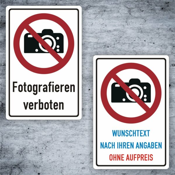 Das Schild gibt einerseits als festes Alu-Verbund oder auch als Aufkleber -Fotografieren verboten-.