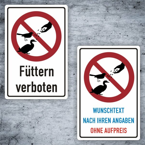 Das Schild gibt einerseits als festes Alu-Verbund oder auch als Aufkleber -Füttern verboten-.