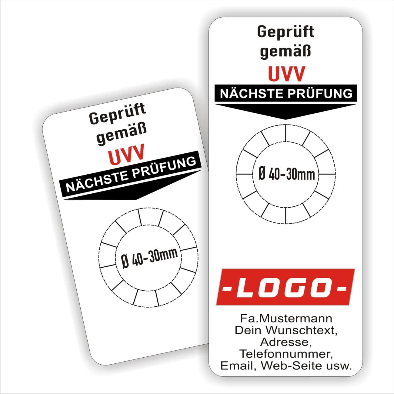 Geprüft gemäß UVV Wartungsplaketten Plaketten Unterlage Grundetiketten