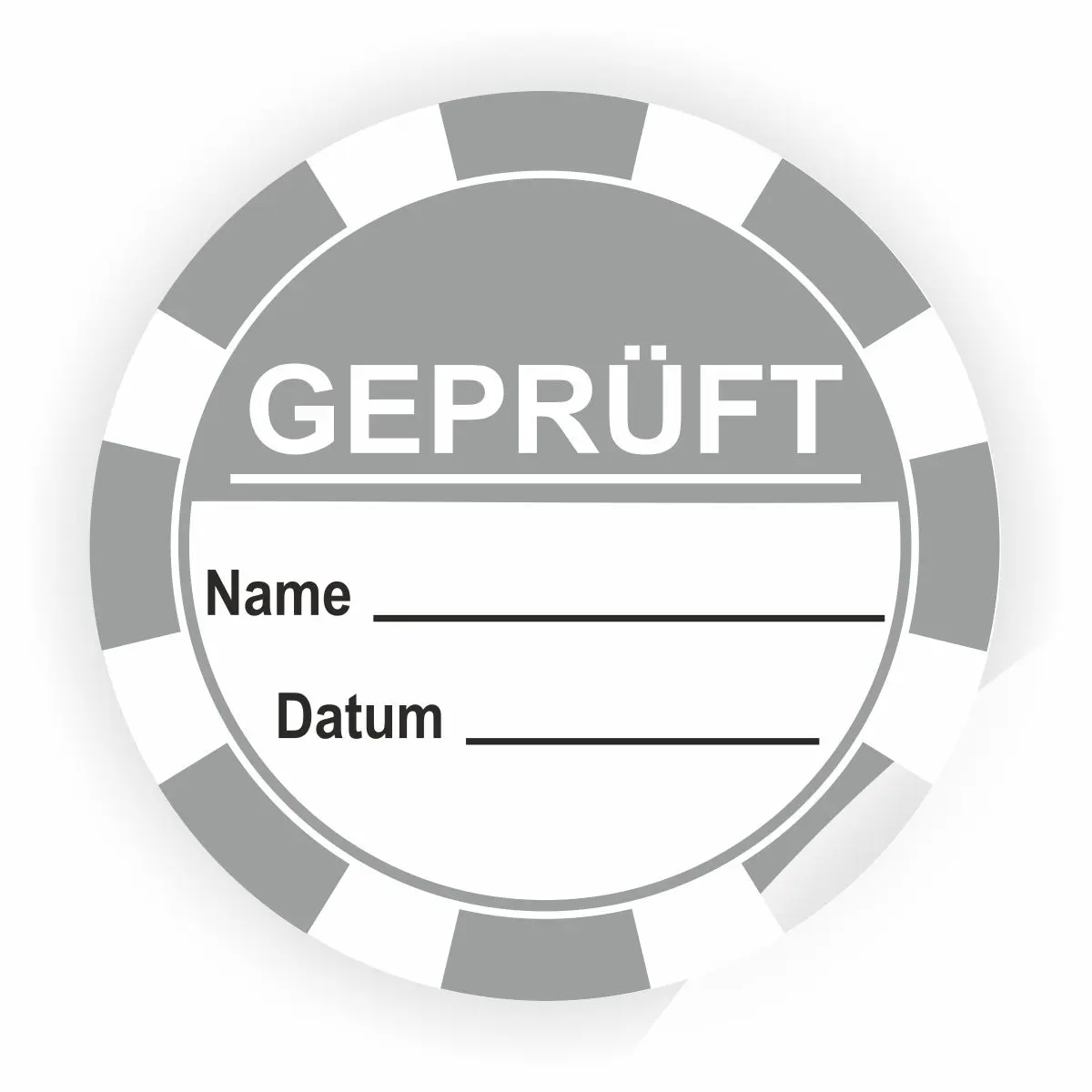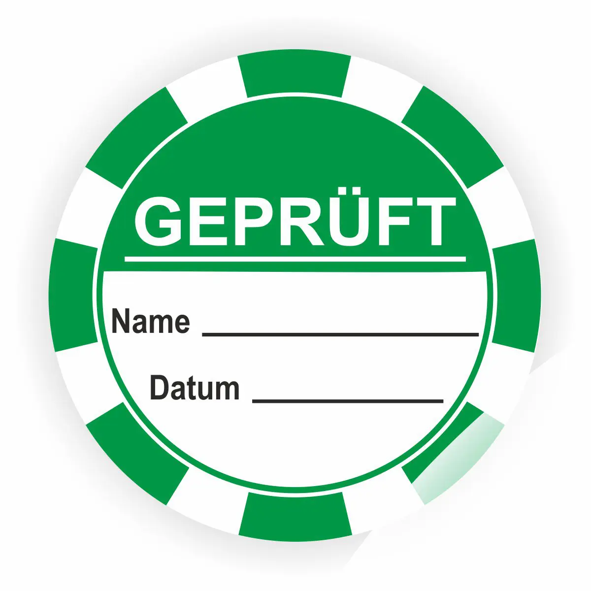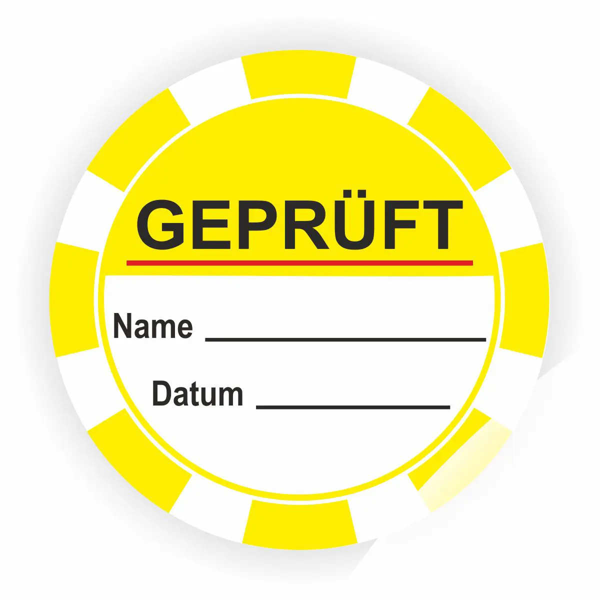 GEPRÜFT Prüfplakette mit Beschriftungsfeld Name Datum