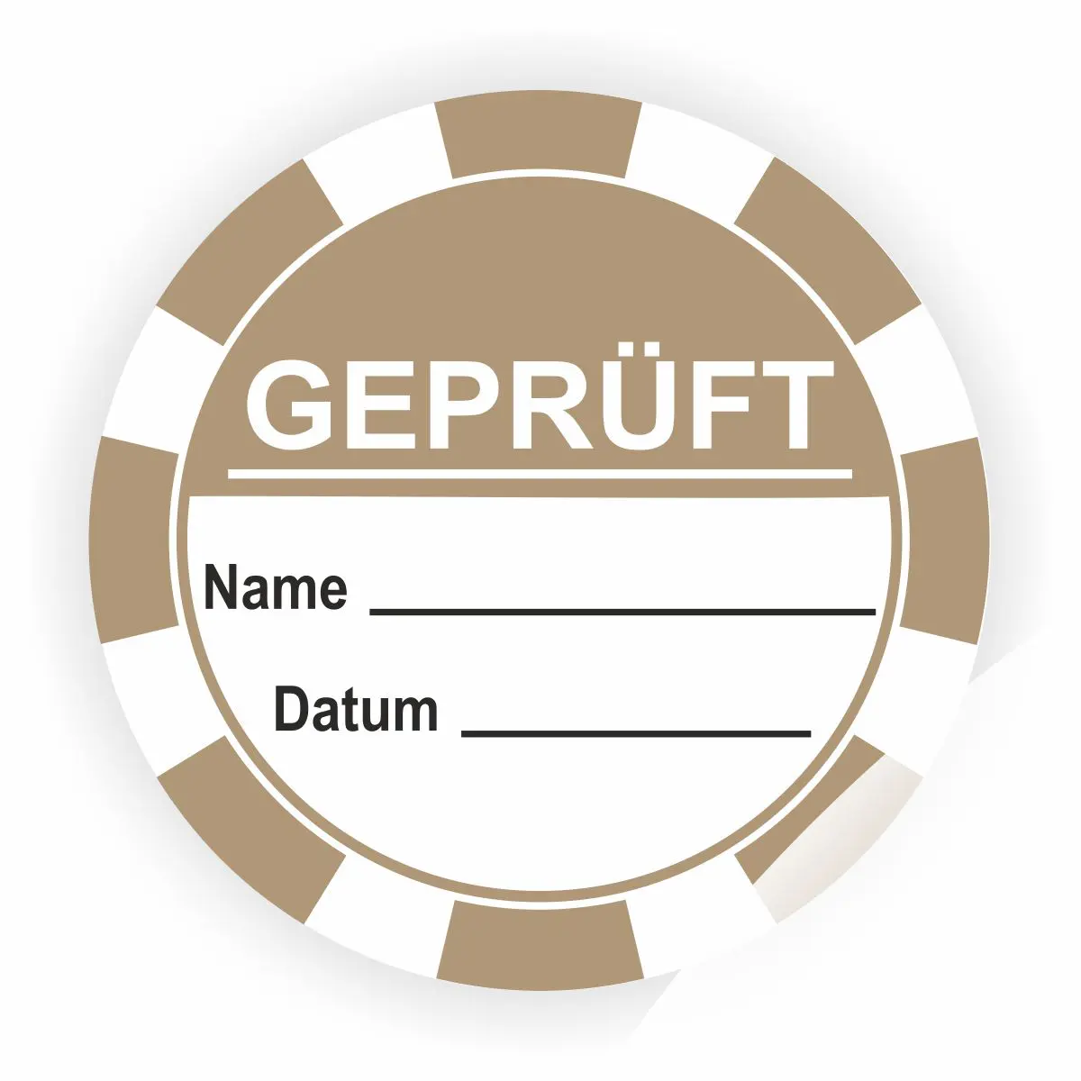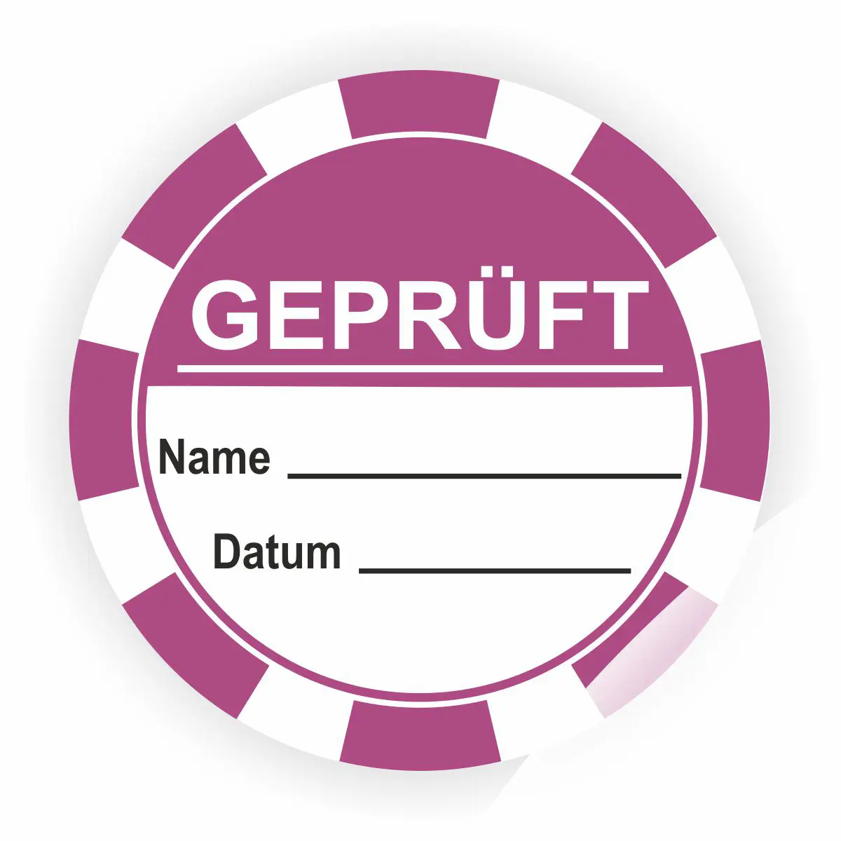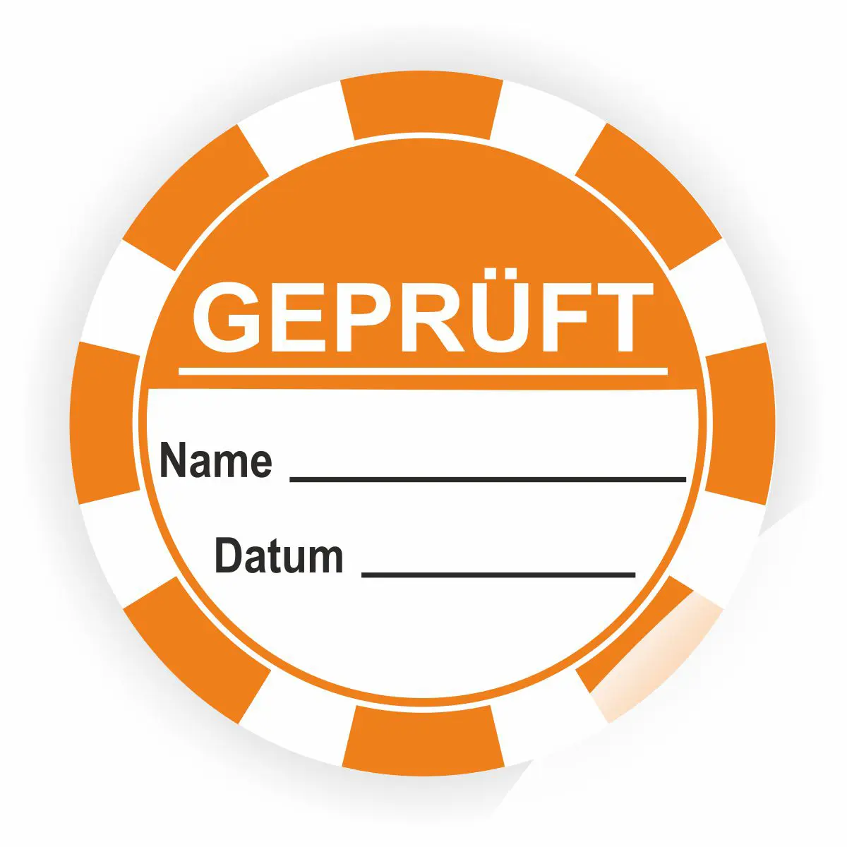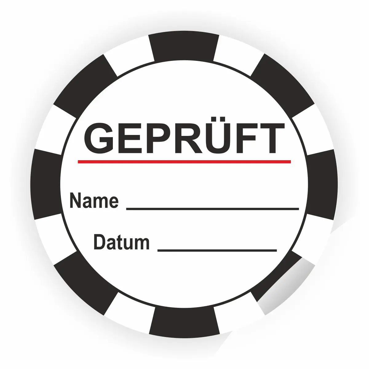 GEPRÜFT Prüfplakette mit Beschriftungsfeld Name Datum