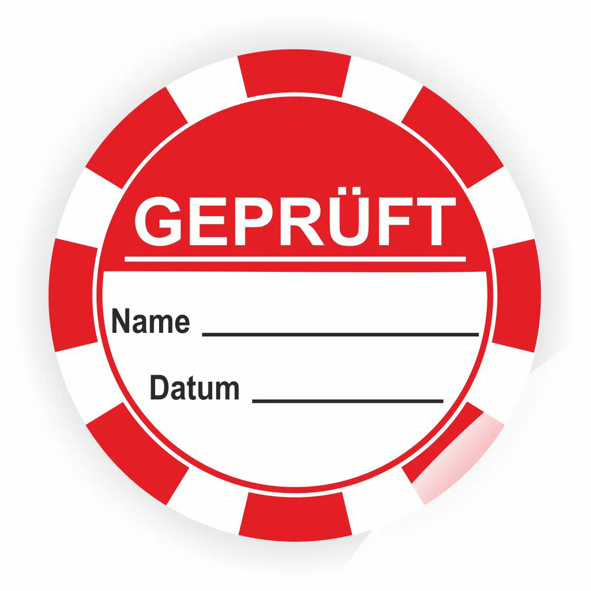 Prüfplaketten -Geprüft- Name Datum Beschriftungsfeld