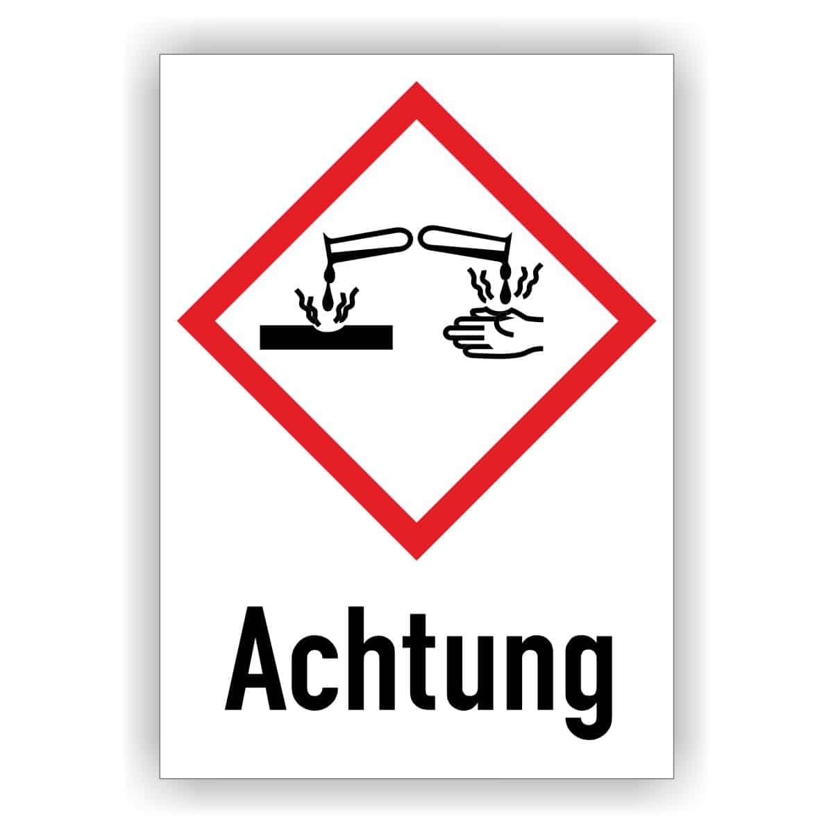 GHS05 – Gefahrstoffetikett nach GHS -Ätzwirkung- Achtung