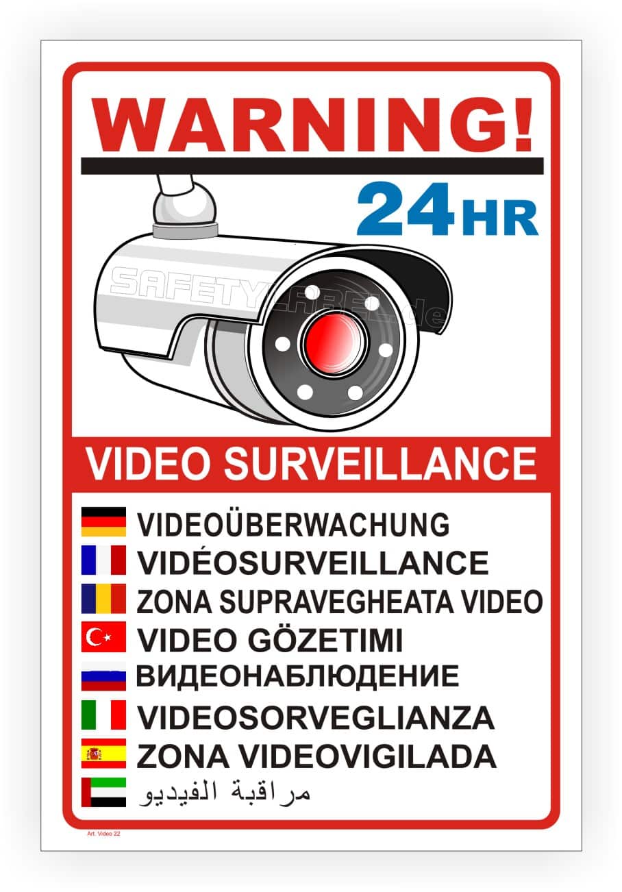 Hinweisschild Videoüberwachung WARNING VIDEO SURVEILLANCE in 9 Sprachen