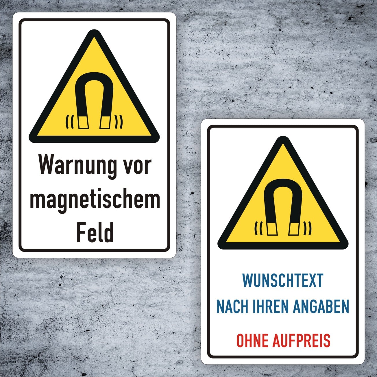 Das Schild gibt einerseits als festes Alu-Verbund oder auch als Aufkleber -Warnung vor magnetischem Feld –.