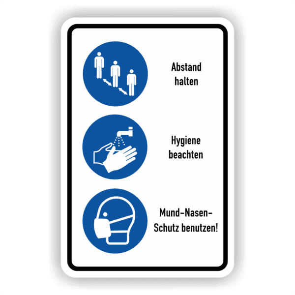 Kombisschild Abstand halten, Hygiene beachten, Mund-Nasen-Schutz benutzen!