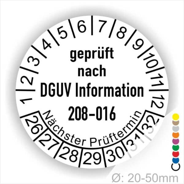 Wir bieten ihnen hochqualitative Leitern und Tritte Prüfplaketten DGUV Info 208-016, in vielen verschiedenen Varianten. Wählen sie ihre Wunschgröße als auch ihre Wunschfarbe und bei individuellen Wünschen können sie auch ihre individuellen Prüfplaketten bei uns Bestellen.