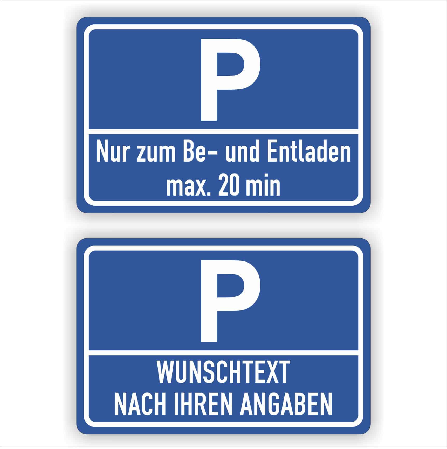 Parkplatz Schild zum Be- und Entladen oder mit Wunschtext