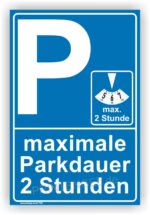 Parksymbol mit Parkscheibe max. Parkdauer 2 Stunden