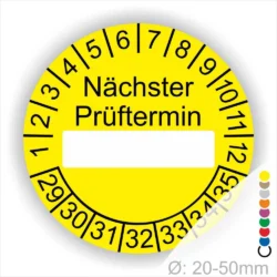 Nächster Prüftermin Prüfplaketten mit Beschriftungsfeld