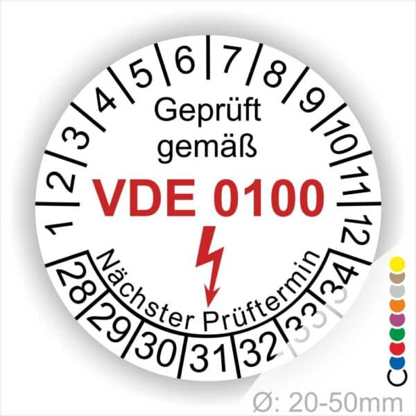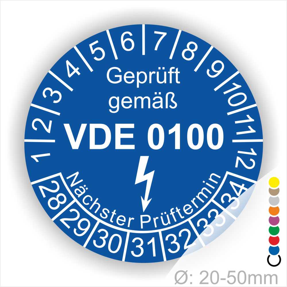 Diese Prüfetiketten- Prüfaufkleber sowie Wartungsplaketten haben den Aufdruck „geprüft gemäß VDE 0100“
