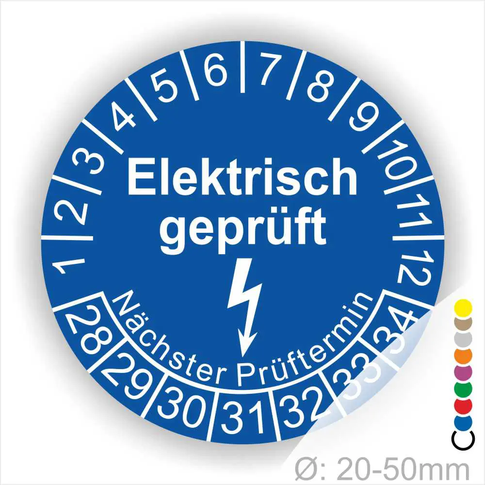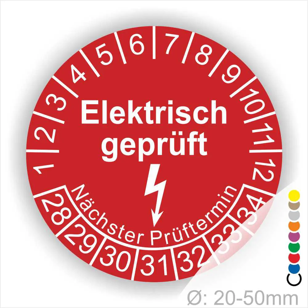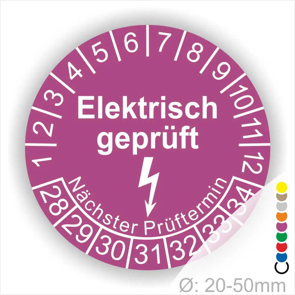 Diese Prüfetiketten- sowie Wartungsplaketten haben den Aufdruck „Prüfplaketten Elektro“