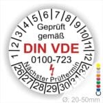 Selbstklebende Prüfplaketten, Prüfetiketten „geprüft gemäß DIN VDE 0100-723“