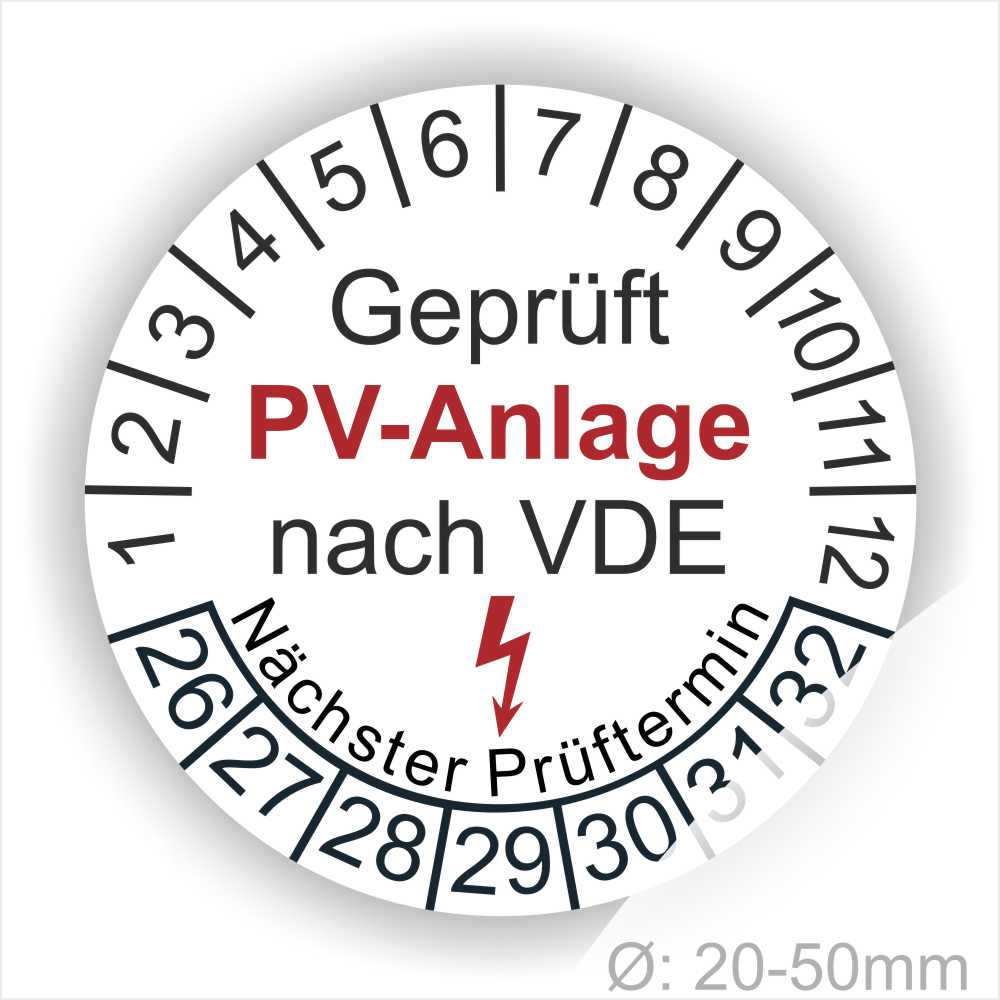 Selbstklebende Prüfplaketten, Prüfetiketten PV-Anlage nach VDE geprüft