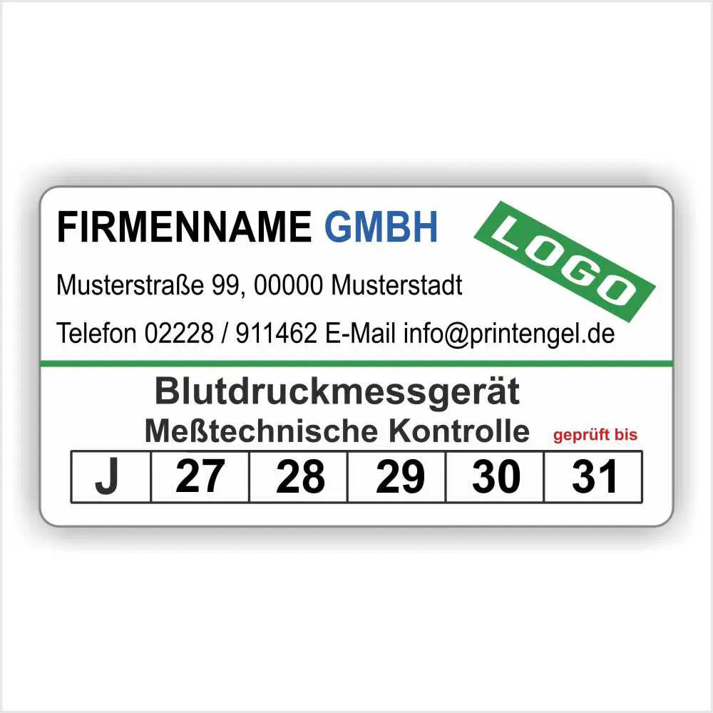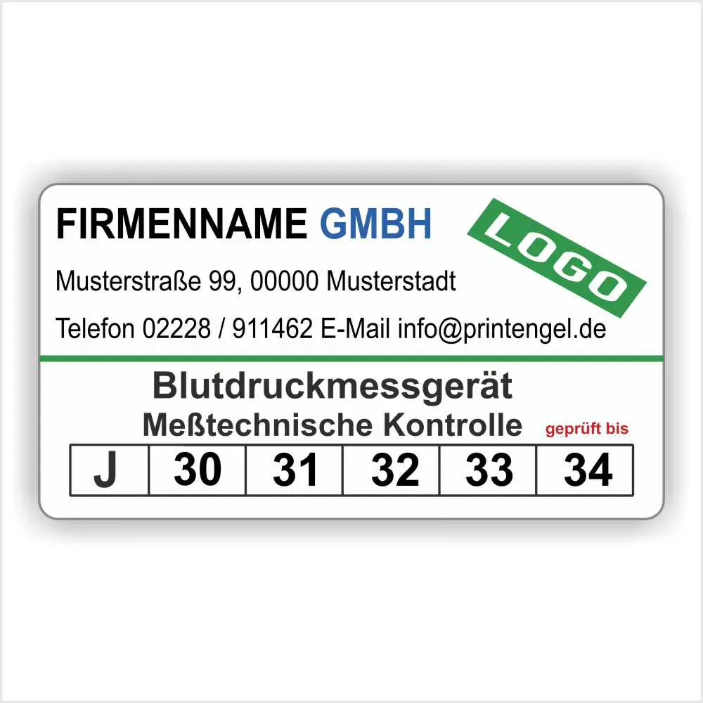 Prüfplaketten Blutmessgeräte mit Firmenaufdruck rechteckig