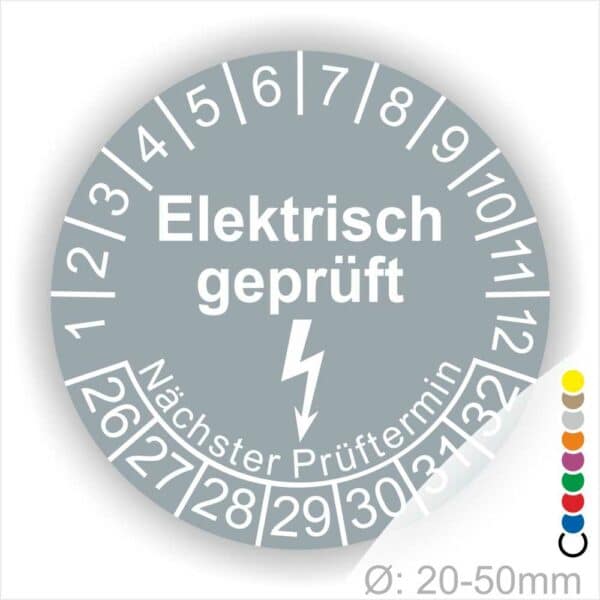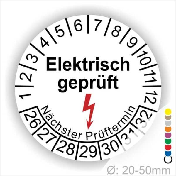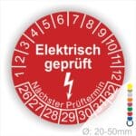 Diese Prüfetiketten- sowie Wartungsplaketten haben den Aufdruck „Elektro Prüfung“