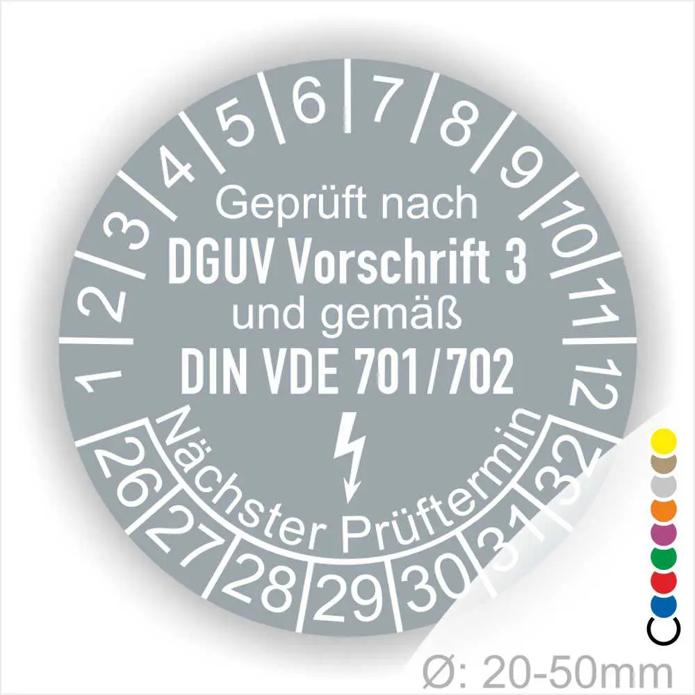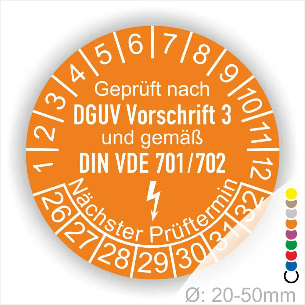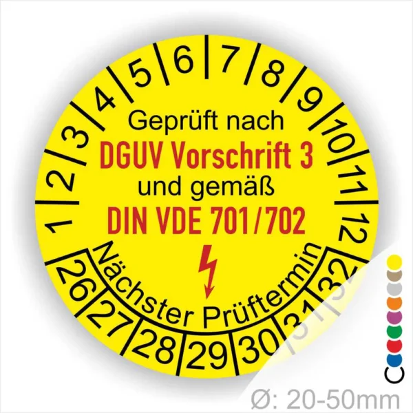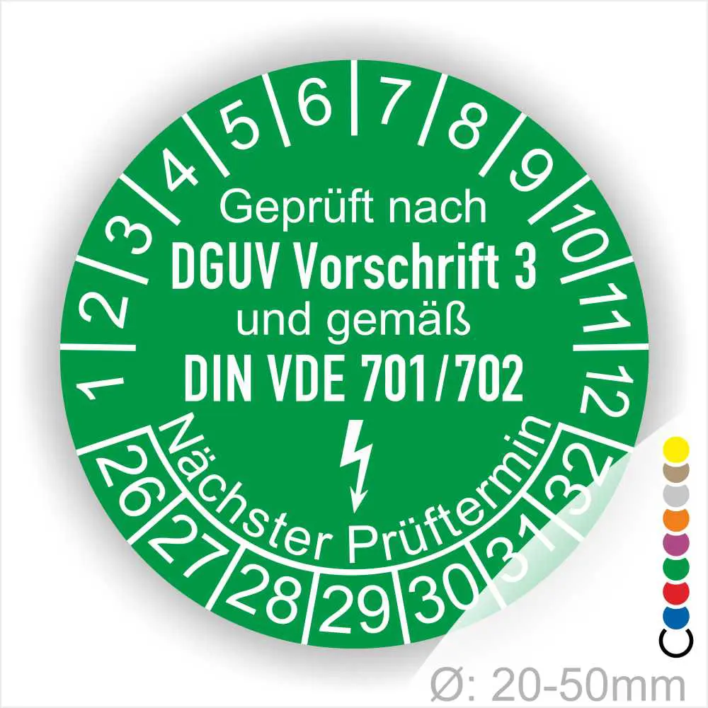 DGUV und VDE Prüfung Prüfplaketten „Geprüft nach DGUV Vorschrift 3 und DIN VDE 701/702“