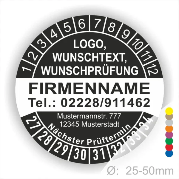 Selbstklebende Prüfplaketten „Prüfplakette mit Wunschtext“