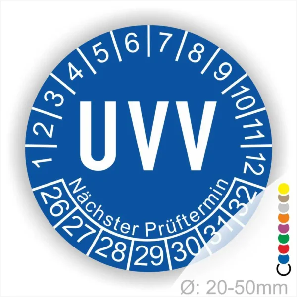 Wir bieten ihnen hochqualitative UVV Prüfplaketten Prüfung von Anlagen & Maschinen, in vielen verschiedenen Varianten. Wählen sie ihre Wunschgröße als auch ihre Wunschfarbe und bei individuellen Wünschen können sie auch ihre individuellen Prüfplaketten bei uns Bestellen.