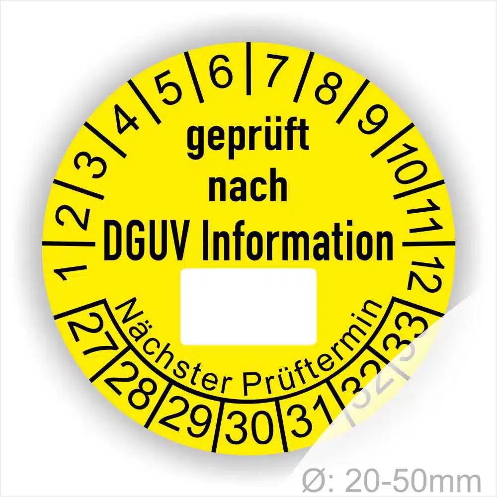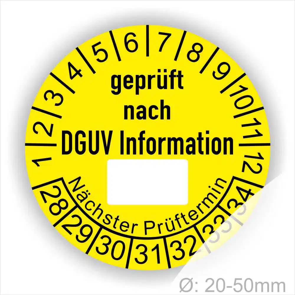Wir bieten ihnen hochqualitative Prüfplaketten DGUV Info mit Beschriftungsfeld, in vielen verschiedenen Varianten. Wählen sie ihre Wunschgröße als auch ihre Wunschfarbe und bei individuellen Wünschen können sie auch ihre individuellen Prüfplaketten bei uns Bestellen.