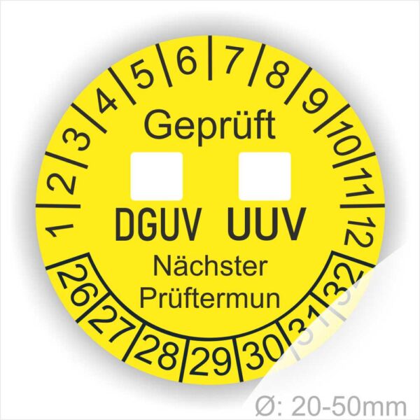 Wir bieten ihnen hochqualitative Prüfplaketten DGUV UVV mit Kästchen zum Ankreuzen, in vielen verschiedenen Varianten. Wählen sie ihre Wunschgröße als auch ihre Wunschfarbe und bei individuellen Wünschen können sie auch ihre individuellen Prüfplaketten bei uns Bestellen.