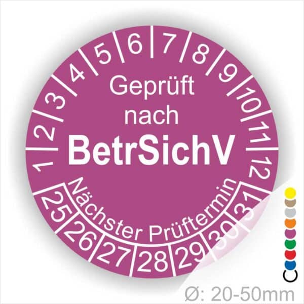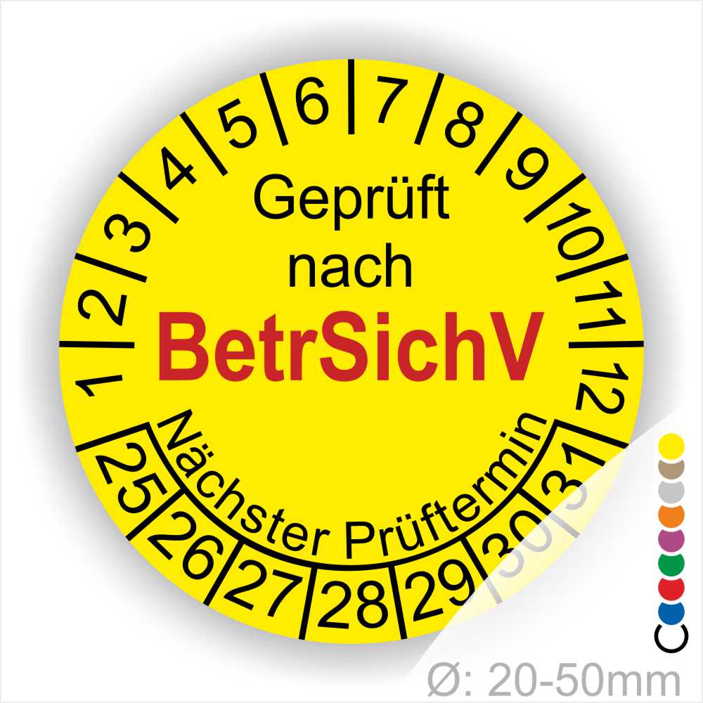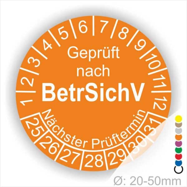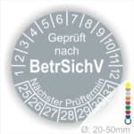 Prüfplaketten geprüft nach „BetrsichV“ Betriebssicherheitsverordnung