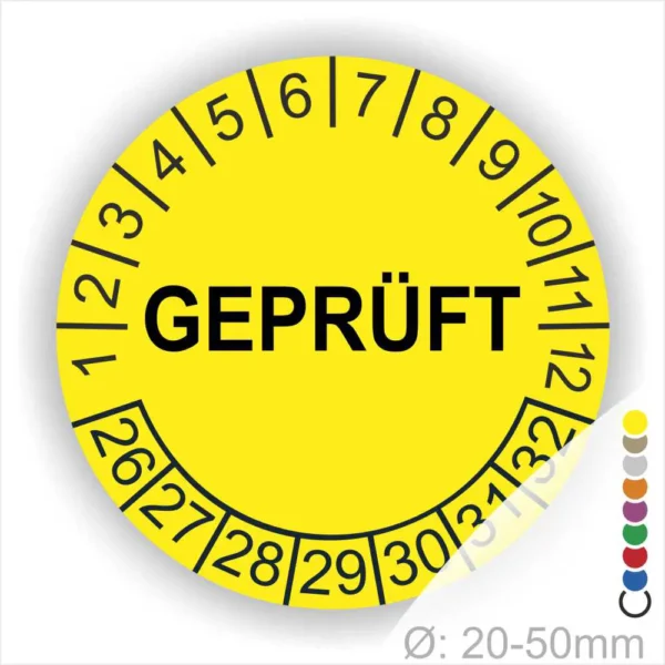 Wir bieten ihnen hochqualitative Prüfplaketten -Geprüft- , in vielen verschiedenen Varianten. Wählen sie ihre Wunschgröße als auch ihre Wunschfarbe und bei individuellen Wünschen können sie auch ihre individuellen Prüfplaketten bei uns Bestellen.