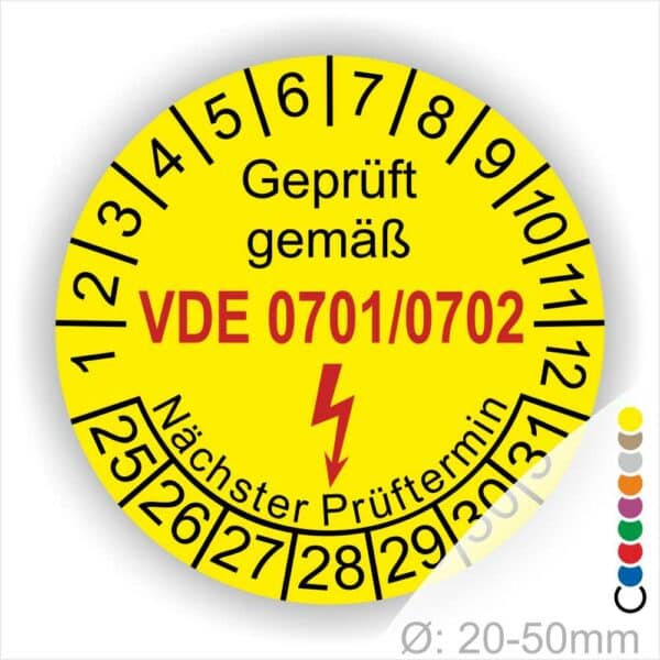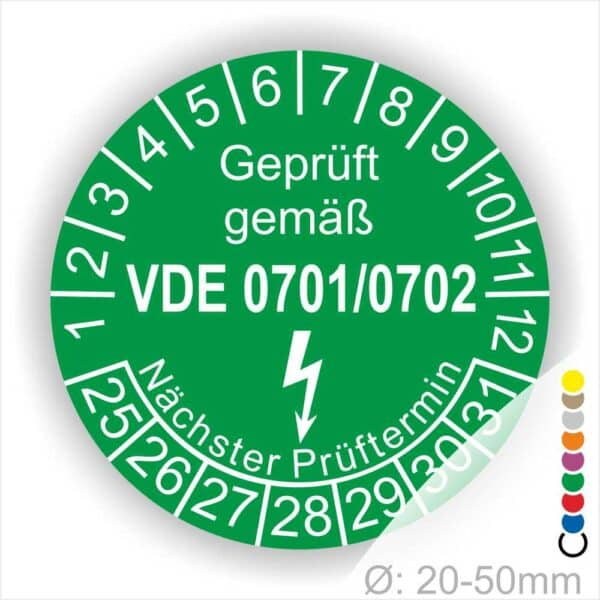 Selbstklebende Prüfplaketten „Prüfung VDE 0701/0702 Prüfplaketten  Nächster Prüftermin“