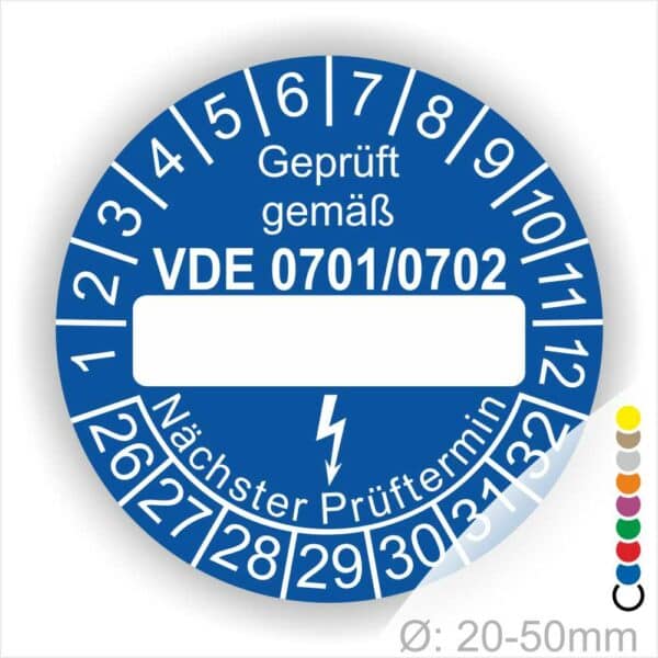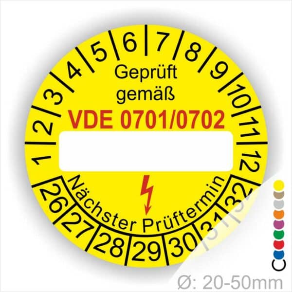 Selbstklebende Prüfplaketten „Prüfplaketten VDE 0701-702 mit Beschriftungsfeld“