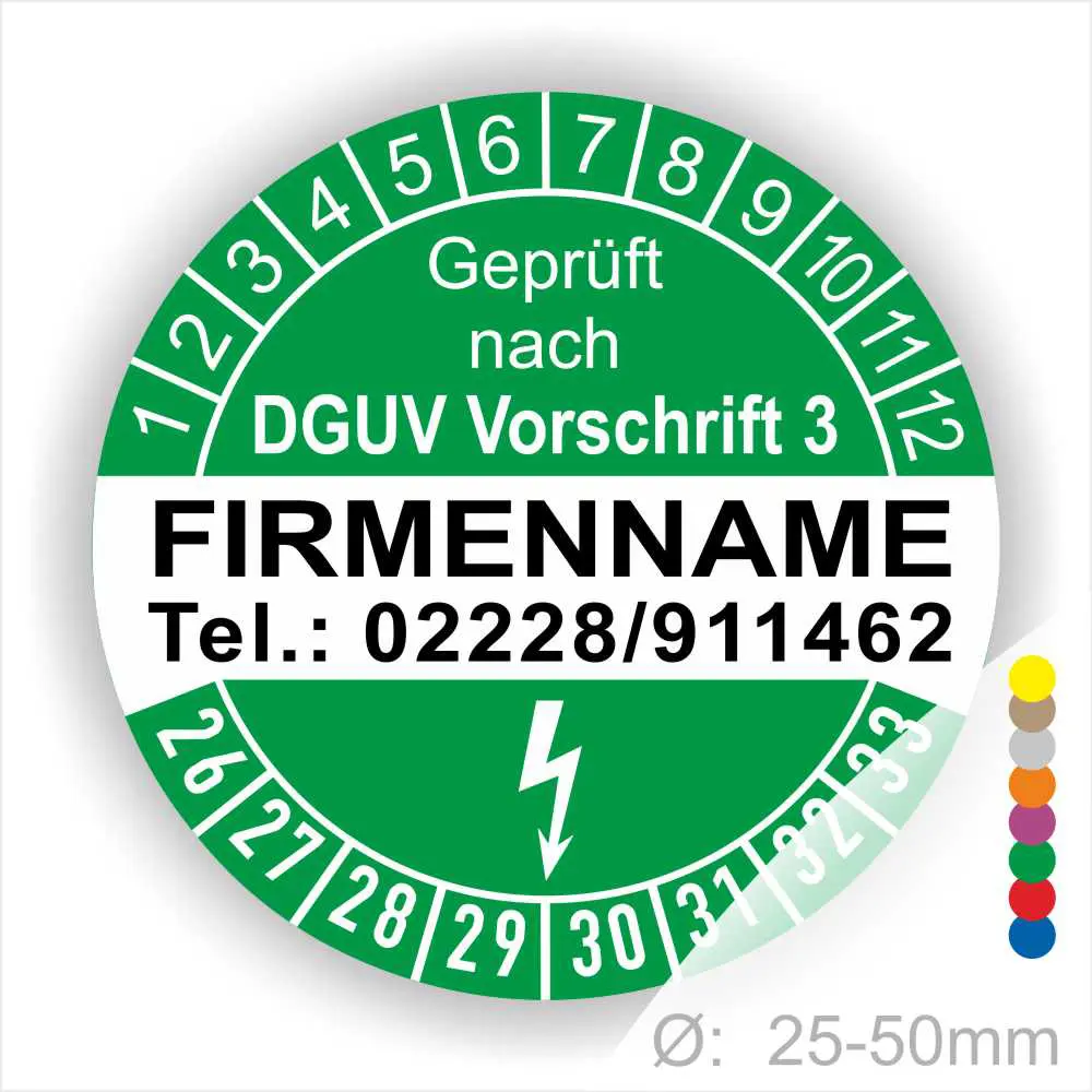 Prüfplakettten DGUV V 3 mit Werbeaufdruck