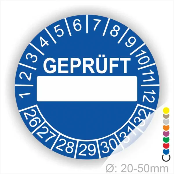 Wir bieten ihnen hochqualitative Prüfsiegel, Prüfplaketten -Geprüft- mit Beschriftungsfeld, in vielen verschiedenen Varianten. Wählen sie ihre Wunschgröße als auch ihre Wunschfarbe und bei individuellen Wünschen können sie auch ihre individuellen Prüfplaketten bei uns Bestellen.