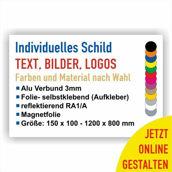 Wir liefern ihre Schilder wahlweise einerseits aus witterungsbeständigem Alu-Verbund 3mm oder auch als – Aufkleber „Querformat Schild personalisiert online gestalten„.