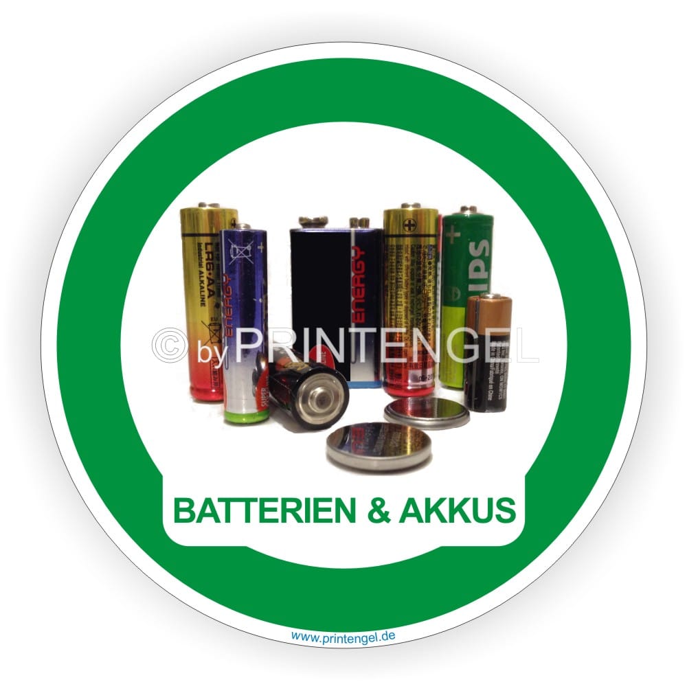 Recycling Aufkleber Batterien-Akkus für Mülltrennung