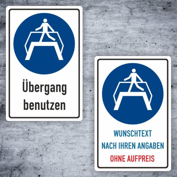 Das Schild gibt einerseits als festes Alu-Verbund oder auch als Aufkleber -Übergang benutzen-.