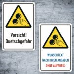 Das Schild gibt einerseits als festes Alu-Verbund oder auch als Aufkleber -Vorsicht Quetschgefahr-.