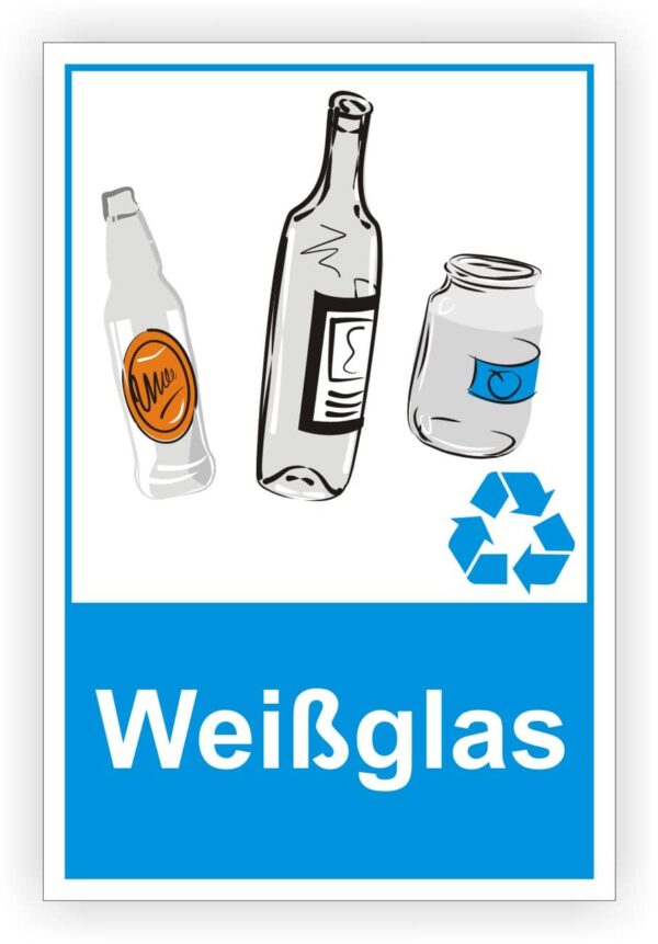 weißglas Recycling Hinweis als Aufkleber oder Schild für Wertstoff-Samel-Behälter, Container, Deutsch